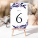 Elegant botanical table number cards feature sprays of vibrant blue and purple botanical leaves surrounding your table number. Design repeats on reverse side. Coordinates with our Abundant Foliage Violet event collection.