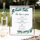Invite guests to grab a favourite libation with our charming wedding bar sign. 11x14 bar sign features a "the bar is open" in calligraphy script lettering. Personalise with your bar menu or signature cocktails with six custom text fields, and add your initials and wedding date along the bottom. A chic addition to your wedding bar setup to share your signature cocktails, wine selections and more. Adorned with watercolor botanical greenery and eucalyptus leaves that match our Abundant Foliage wedding collection.