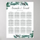 Wedding seating chart matches our Abundant Foliage collection, featuring lush watercolor botanical greenery and eucalyptus leaves framing your guest seating details.