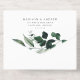 Invite your guests with natural elegance using this modern botanical all-in-one wedding invitation. Featuring lush watercolor greenery—eucalyptus, ferns, and leafy branches—this design frames your wedding details in a soft arched layout with shimmering gold foil lettering. The all-in-one format includes a detachable RSVP postcard for easy guest responses. Perfect for garden, outdoor, or minimalist weddings, this design coordinates with our Abundant Greenery wedding collection.