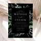 Elegant wedding invitations featuring your wedding details nestled in a rectangular frame surrounded by eucalyptus, ferns, and other rich greenery with a black background. The modern botanical wedding invitations reverse to a solid black background. Designed to coordinate with our Abundant Greenery wedding collection.