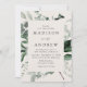 Elegant wedding invitations featuring your wedding details nestled in a rectangular frame surrounded by eucalyptus, ferns, and other rich greenery on a cream background. The modern botanical wedding invitations reverse to display your full-bleed vertical photo. Designed to coordinate with our Abundant Greenery wedding collection.