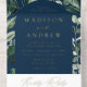 Abundant Greenery Navy Arch Frame Foil Wedding All In One Invitation