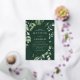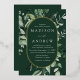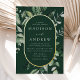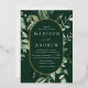 Elegant wedding invitations featuring your wedding details nestled inside of a gold foil oval frame surrounded by eucalyptus, ferns, and other rich greenery with a dark green background. The modern botanical wedding invitations reverse to a solid green background. Designed to coordinate with our Abundant Greenery wedding collection.