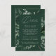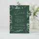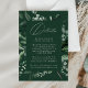 Elegant botanical wedding details cards featuring your details nestled in a rectangular frame surrounded by eucalyptus, ferns, and other rich greenery on a dark green background. Add details such as hotel accommodations, welcome reception information, wedding website, etc. Designed to coordinate with our Abundant Greenery wedding collection.
