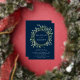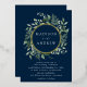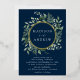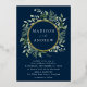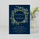 Elegant wedding invitations featuring your names encircled by gold foil with eucalyptus leaves, fern fronds, and other rich greenery on a navy background. Personalise the gold foil wedding invitations by adding your wedding details below. The modern botanical wedding invitations reverse to a solid navy blue background. Designed to coordinate with our Abundant Greenery wedding collection.