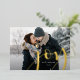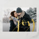 Simple and elegant holiday photo card lets your favourite photo take centre stage. Chic design features a full bleed horizontal or landscape orientated photo, with "joy" overlaid in gold foil script lettering. Personalise with your names or family name, and the year. Cards reverse to a wintry red and green tartan plaid pattern.