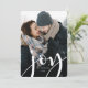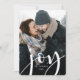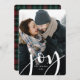 Simple and elegant holiday photo card lets your favorite photo take center stage. Chic design features a full bleed vertical or portrait oriented photo, with "joy" overlaid in white script lettering. Personalize with your names or family name, and the year. Cards reverse to a wintry red and green tartan plaid pattern.