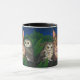 Abyssinian Cat, Saw Whet Owls, Midnight Watching Fantasy Art Mug