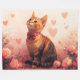 Abyssinian Cat with Roses - Valentine's Day Fleece Blanket