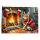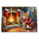 This warm and festive Christmas illustration features a graceful Abyssinian sitting beside a glowing fireplace, gently wrapped in twinkling Christmas lights with stockings hanging above. The breed’s sleek coat and curious expression add elegance and charm to this cozy holiday scene. Perfect for Abyssinian lovers, holiday décor fans, and Zazzle shoppers searching for unique Christmas artwork that celebrates their favorite cat breed.