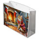 Abyssinian Sitting Fireplace with Christmas Lights Large Gift Bag