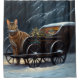 Capture the magic of a winter wonderland with this enchanting Christmas design. Featuring a wooden cart nestled in a snowy scene, this decoration brings holiday charm to any setting. Embrace the spirit of the season with this delightful addition to your decor.