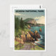 A picturesque and nostalgic depiction of Acadia National Park, celebrated for its rugged coastline, granite peaks, and lush forests. The design captures iconic sights such as Cadillac Mountain, the rocky shores along the Atlantic Ocean, and vibrant fall foliage, showcasing the park’s diverse landscapes. Rendered in a vintage style, the artwork evokes the natural beauty and serene atmosphere of Acadia National Park, inviting viewers to explore its scenic trails, rich wildlife, and breathtaking ocean views.