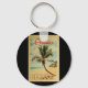 A uniquely retro mid-century modern Acapulco Mexico art print in vintage travel poster style. It features a curved palm tree on sandy beach with ocean under a blue cloudy sky.