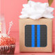 A sporty cyan blue racing stripes accent in black carbon fibre style design decor. The carbon fibre print look suits automotive, modern, and industrial tastes and the vibrant vertical lines make for a dynamic design.