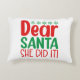 Add holiday humour to any room with this accent pillow! Featuring “Dear Santa, She Did It” in bold festive lettering, it’s perfect for couches, chairs, bedrooms, or holiday parties.