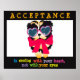 "Acceptance is seeing with your heart, not with your eyes" poster. Help create a positive environment for both kids and adults with this motivational poster. Poster text is highly customisable. Great educational poster to use for classroom, office, and at home.