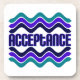 Acceptance quote Bold, contemporary graphic of purple, blue and green. A spiritual message. Acceptance of how things are now right now and acceptance of others, then taking action for change. Popular term in 12 step programs such as Alcoholics Anonymous, Narcotics Anonymous, Al Anon. Equality for everyone. In any 12 step program, acceptance is the cornerstone to Recovery. Celebrate your recovery on these quality products reminding us "Acceptance" is the answer to our problems.