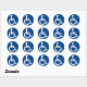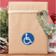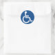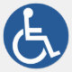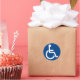 Accessibility sign. Wheelchair symbol. Stylised white person on a wheelchair. Blue background.