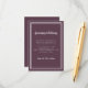 Simple elegant wedding information detail enclosure card features a minimalist design with a double frame border in crisp white on a Cassis Purple background. Traditional wording provides timeless yet modern sophistication. Personalise wedding design with your details in crisp white lettering and script. The back of the card matches in solid cassis purple.