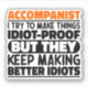 Funny Accompanist Sayings "Accompanist I Try To Make Things Idiot Proof But They Keep Making Better Idiots". Grab this Funny Web Developer design as a funny gifts for an awesome mum, dad or friend.