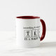 ACCORDING TO CHEMISTRY TEA IS A SOLUTION fun science tea mug. Shown with maroon accents.