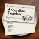 A simple business card with an illustration of a piano accordion and sheets of music. An ideal choice for accordionists, musicians, teachers, performers, and concerts.