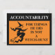 Accountability for things he did is not a witch-hunt. This is true for Trump, but it's true for so many other people as well. For Trump, no matter how many times he tries to make himself the victim, he's not. He did things, there are consequences. He's just not used to being held accountable for his own actions. Reality can be very hard for people who have never had to live in it. Design description: The design area has a black background. On top of the black background is an orange rectangle that fills most of the bottom four-fifths of the design area, leaving a small border along the left, right, and bottom side. In the black space above the orange rectangle, the word "Accountability" in white all-caps letters. Inside the orange rectangle, on the left-hand side is a black and white line-drawing graphic of a witch. She is facing to the right, she wears a pointy hat and a black outfit, and is riding a broomstick. The right-hand sign of the orange rectangle has the words, "For things he did is not a witch-hunt," in black all caps letters.