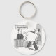 Gift for an accountant. Keyring for an accountant. Accountant behind the reception desk at his office is surprised to see a Client entering carrying a large Piggy Bank