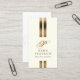 This beautiful, elegant accountant financial skills and services business card has a simple design comprising double gold stripes running vertically in the centre of the card, with a break towards the lower half where your monogram initial appears in a beautiful calligraphic script font. Below that appears your name and title/text. Your contact details appear on the back of the card. Strong, clear, modern, typeface is used in black to contrast against the off-white background. Perfect for finance, investment, management, administration, marketing, professional, business services, bright, white, gold, stripe, strong, professional, modern, chic, elegant themes. The generic nature of this design makes it suitable as a business card for any type of business or profession.