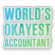 World's Okayest Accountant in sans-serif uppercase block lettering in gradient grunge blend of turquoise blue and light green.