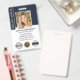 Create a professional appearance with this Notary Public ID badge. A stylish design featuring a feather quill pen within a seal-shaped symbol. This template is personalised with your profile photo, name, service information, contact details, and a QR code. Add a company logo or accreditations — the notary symbol can also be replaced. A classic blend of traditional and contemporary styles, creating an elegant and friendly aesthetic. Fully customisable text to fit your business brand. Perfect for a Notary Public, Loan Signing Agent, Certified Notary Trust Delivery Agent (CNTDA), Mobile Notary, Apostille or other legal professional. Printed colours: dark Midnight Blue (blue-black), black, white, and gold colour elements. Shop the online collection for more popular product ideas and supplies, designed for notaries!