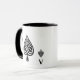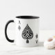 Made to look like an ace of spades playing card or a trump card, this design features an ornate spade illustration in black and white.