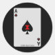 The red hour glass mark of the black widow is stamped on the spade of this ace card design.