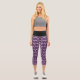 High waisted capris with a seamless pattern with rainbows in the colours of the asexuality pride flag; purple, white, grey, and black on a purple background