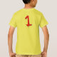 The t-shirt feels and looks great quality, a good thick cotton. It will be a little big for my son, but that means he will be able to wear it and not out grow it too soon. The print was as described on the order when personalised. True size, shape and colour T-shirt- thanks.