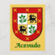 Spanish surname * Acevado * Shield Postcard with a bright yellow background.