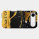 Protect and elevate your device with the Opulent Swirl Liquid Gold Black iPhone 17 Case. This striking, dynamic design captures the awe of the cosmos with a bold, modern twist. Dramatic black space serves as the backdrop for brilliant white starbursts and a central, gilded banner featuring the "ACHEMPONG" name in stark relief. Smooth, reflective streams of liquid gold flow across the frame, creating a sense of dynamic movement and celestial energy. This premium Achempong Zazzle case offers durable protection and showcases luxury abstract art as sophisticated mobile technology accessory, perfect for making a high-end statement.