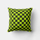 Acid green black checkerboard pattern cushion