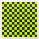 A vibrant checkerboard pattern with alternating neon yellow and black squares creates a striking geometric design, conveying a bold and energetic tone.