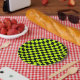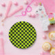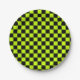 Acid green black checkerboard pattern paper plate