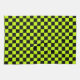 A vibrant checkerboard pattern with alternating neon yellow and black squares creates a striking geometric design, conveying a bold and energetic tone.