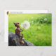 Acorn elf blows into dandelion - funny postcrossing postcard