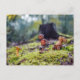 Acorn elf carrying a mushroom in a little cart - funny postcrossing postcard