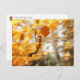 Acorn elf flying on the oak autumn leaf - funny postcrossing postcard