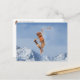 Acorn elf jumping and flying on the skis winter postcard - funny postcrossing postcard