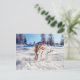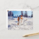 Acorn elf making a snowman - funny winter postcrossing postcard