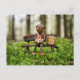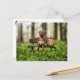 Acorn elf resting in the forest with a present box - funny postcrossing summer postcard or birthday card