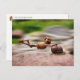 Acorn elf riding on the snail with high speed - funny postcrossing postcard